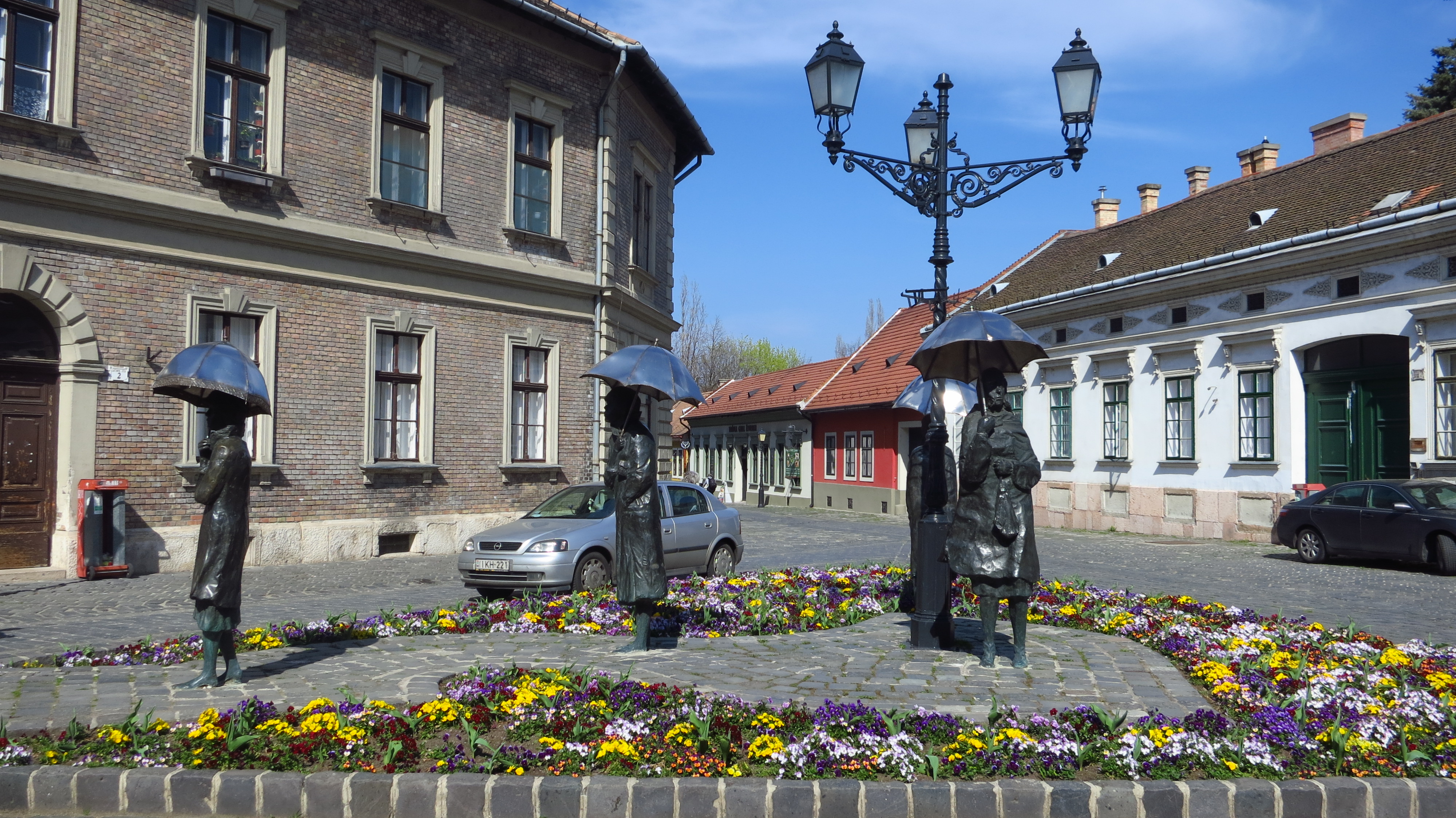 When coming in by train, you’ll find all the informations you needThe Fö tér (main square) of Óbuda with the town hall, another old building and if you look close enough you can find a small panel-house behind. Found it?Waiting for the rain? No chance today…The mighty Faluház behind some roman columns