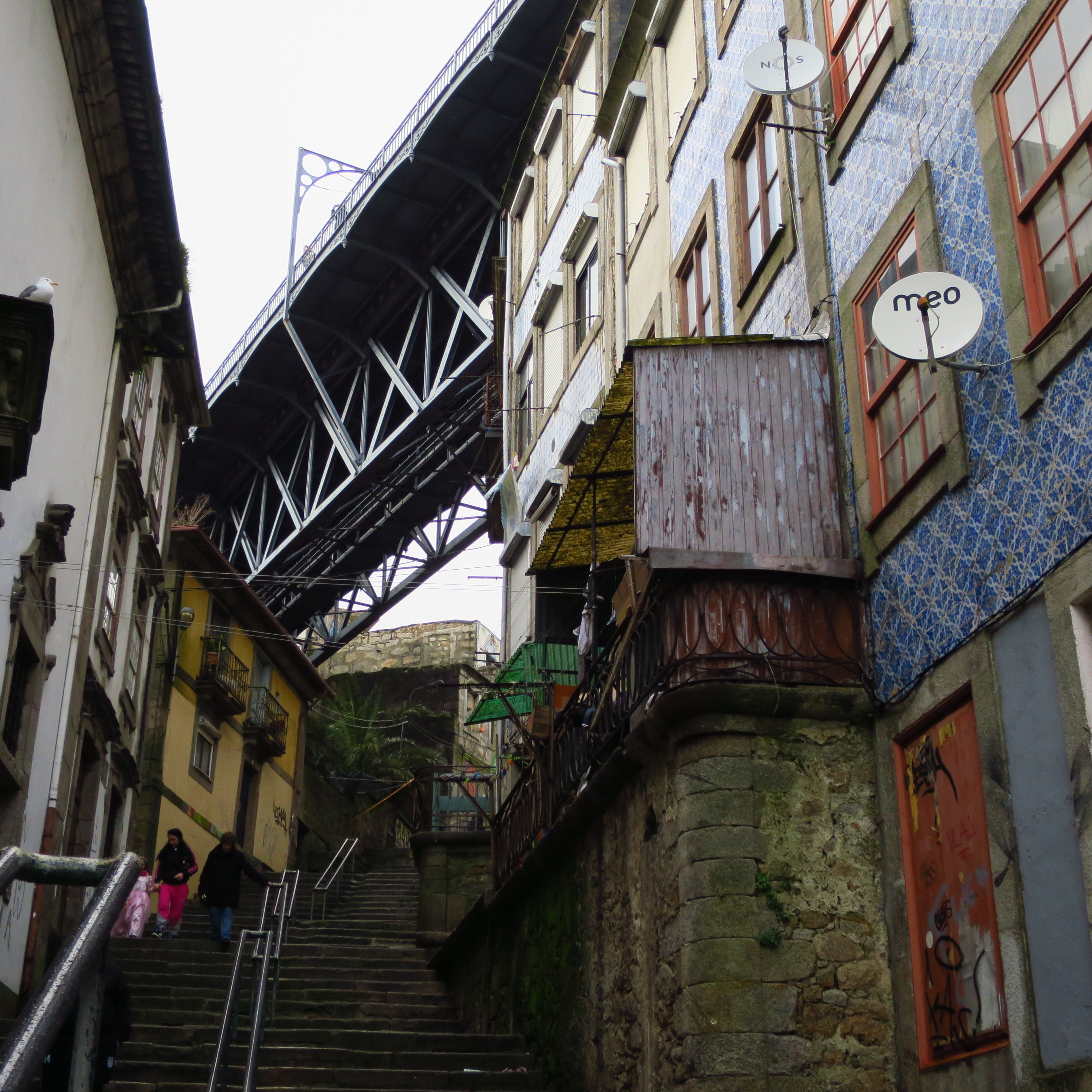 View from the monument of the portuguese discoverersThe handy cable-car in the center of the oldtown of LisbonDexter’s blood samples in the museum of medicine historyView from the Pantheon over the Alfama (old town)Nightly view of PortoSale of fruits and vegetablesPorto from above……and from belowThe famous, and dangerous, Portwine casks