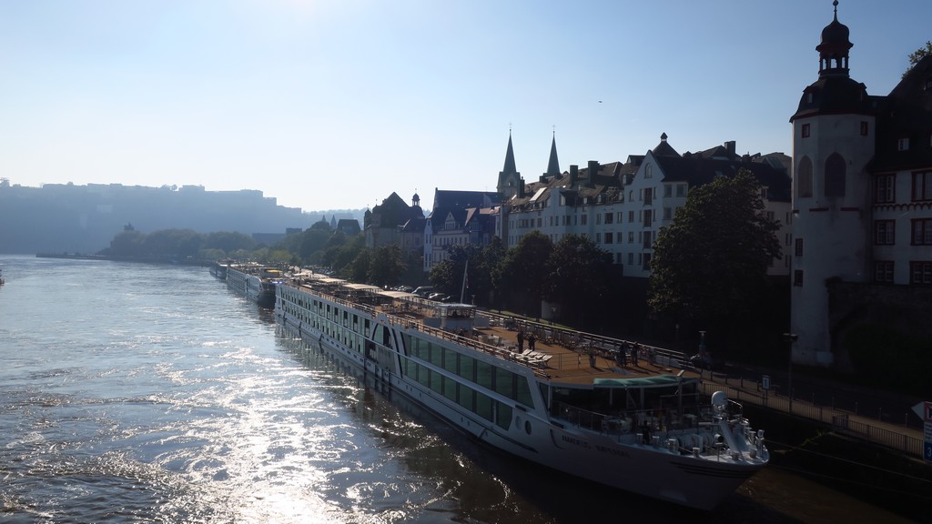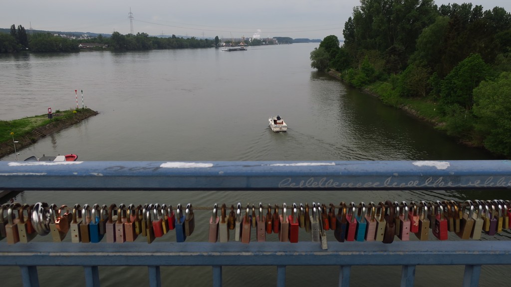 Container und Chemie Schifffahrt bei WormsEin ehemaliges frühes Konzentrationslager in OsthofenDenkmal bei Nierstein, das der ersten erfolgreichen Rheinüberquerung der Allierten während des 2. WK gedenktNackenheim zwischen Nierstein und OppenheimRheinkilometer 489 seit Konstanz – alle 100m gibts eine weitere kleinere TafelIm Zentrum der Mainzer AltstadtIm Schiersteiner Hafen, nähe Wiesbaden / HessenZwischen Mainz und Koblenz gibt es für knapp 100km keine Brücke, dafür diverse FährenDie Schifffahrt schlängelt sich zwischen den Auen und Überlaufbecken durchEin historischer Stein der alten RheinkilometrierungBurgruine Ehrenfels bei Bingen, mit einem der drei “kurzen Rheinkilometer”, der aufgrund früherer Messungenauigkeiten entstanden ist und heute nur noch 525m misst.In der hübschen Altstadt von BacharachBurg Stolzenfels als ehemalige Zollstation im Rhein beim Aufstieg zur LoreleyBlick vom Loreleyfelsen auf die tiefste und engste (und ehemals sehr gefährliche) Stelle im schiffbaren RheinBlick auf die Bopparder Rheinschleife mit dem über 100 Jahre alten Raddampfer “Goethe”Darstellung des oberen Mittelrheintals, welches seit 2002 Unesco Weltkulturerbe ist. Im Hintergrund die markante Marksburg und drei Schornsteine…Die ersten Brücken seit Langem kurz vor KoblenzBlick aus dem epischen Kaiser-Wilhelm-Denkmal beim Deutschen Eck, wo Rhein und Mosel zusammenfliessenViele der Touristenschiffe starten bei Koblenz oder legen einen Zwischenhalt einZwischen Koblenz und AndernachBrückenpfeiler bei Remagen, wo die Alliierten am 7. März 1945 die halbwegs intakte Ludendorff-Brücke einnehmen konnten und so tausende Fahrzeuge und Truppen über den Rhein bringen konnten, bevor diese doch noch einstürzteBurgruine Drachenfels und Schloss Drachenburg im Siebengebirge kurz vor BonnAuf dem Wander- und Radweg zwischen Bonn und KölnRheinkilometer 666 kurz vor den Ausserbezirken von KölnIrgendwas mit Chemikalien und Energie, gleich hinter dem angenehmen Wanderweg dem Rhein entlangRiesige Industrieanlagen zieren das linke Rheinufer vor Köln