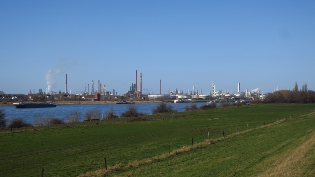 Die Hohenzollernbrücke in Köln am zweiten Tag der sechsten Etappe dem Rhein entlangAusserhalb von KölnWeiter gegen Norden wirds idyllischChemiepark in DormagenEiner der verbliebenen Myriametersteine der alten Rhein-KilometrierungZeit geniessen ausserhalb der zahlreichen Schwerindustrien am NiederrheinLangsam gehts stromaufwärts nach Köln, oder……stromabwärts nach DüsseldorfKurz vor Düsseldorfs ZentrumÜberholmanöver von ChemiefrachternSicht auf den hübschen Chemiepark in Krefeld-UerdingenEin Teil des Kraftwerkes Huckingen bei Duisburg, welches für die enorme Stahlindustrie gebraucht wirdStahlindustrie in DuisburgAuto-Terminal in DuisburgDas “Rheinorange” welches den Zusammenfluss von Ruhr und Rhein bei Kilometer 780 (ab Konstanz) kennzeichnetNördlich von Duisburg erstreckt sich das grösste Stahlwerk von Europa über mehrere KilometerSchwierige “Wanderwege” entlang des RheinsThyssen-Krupp StahlwerkStillgelegtes und im Abriss befindliches Kohlekraftwerk in VoerdeEine der noch wenigen möglichen Rheinüberquerungen in Deutschland bei WeselIm Naturpark “Bislicher Insel” Im Zentrum von Xanten nahe der Niederländischen Grenze